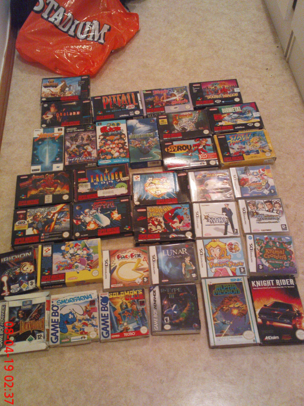 Du kan ju kolla min lista om det finns några intressanta byten men jag kan börja med att bjuda 500 fraktat för Super Turrican och Demon's Crest.