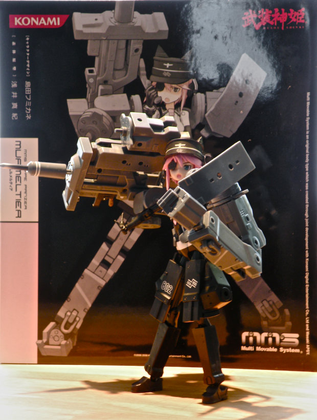 This Panzer tank-type Murmeltier figure comes with a plethora of weapons, armor parts, and accessories for endless hours of fun posing and swapping parts with other figures in the Busou Shinki series! Set her up in full armament for battle, or display her as a normal girl in a battle suit looking cute! Murmeltier's character designer is Fumikane Shimada, known for his character designs for "Strike Witches," "Sky Girls," and Konami's Mecha Musume toy line.